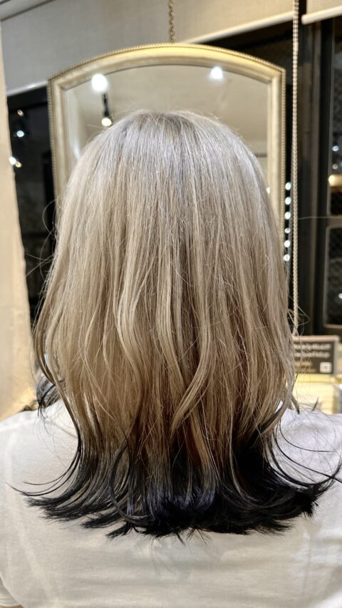 こんにちは工藤です 今日はハイトーンデザインカラーを紹介します ホワイトベージュベースに黒のエンドカラーを合わせてます 意外とい[…]