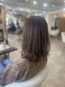 後ろは入れていませんが、表面だけふわっとワンカールしてあげるだけで全体的にレイヤーが入ってるような軽さに♪