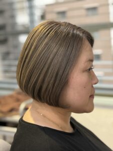 今回は、これからの時期にオススメの白髪ぼかしハイライト×ショートボブのご紹介です^ ^