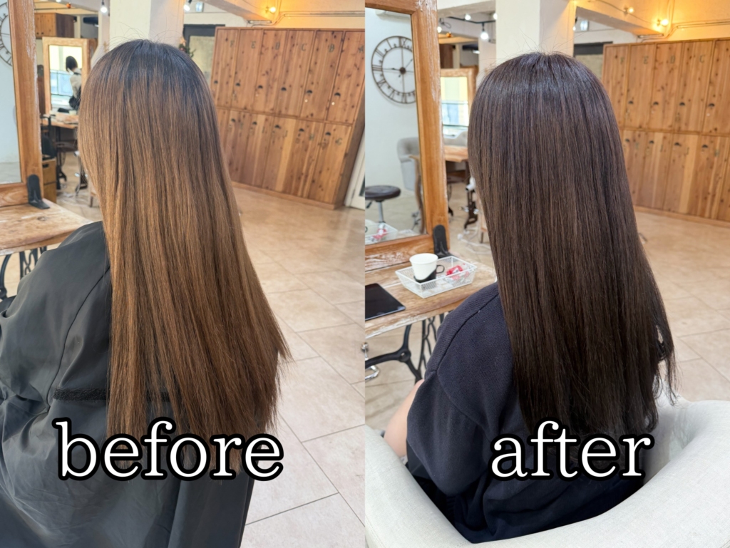 ブリーチが抜けて明るくなったので暗くするオーダー