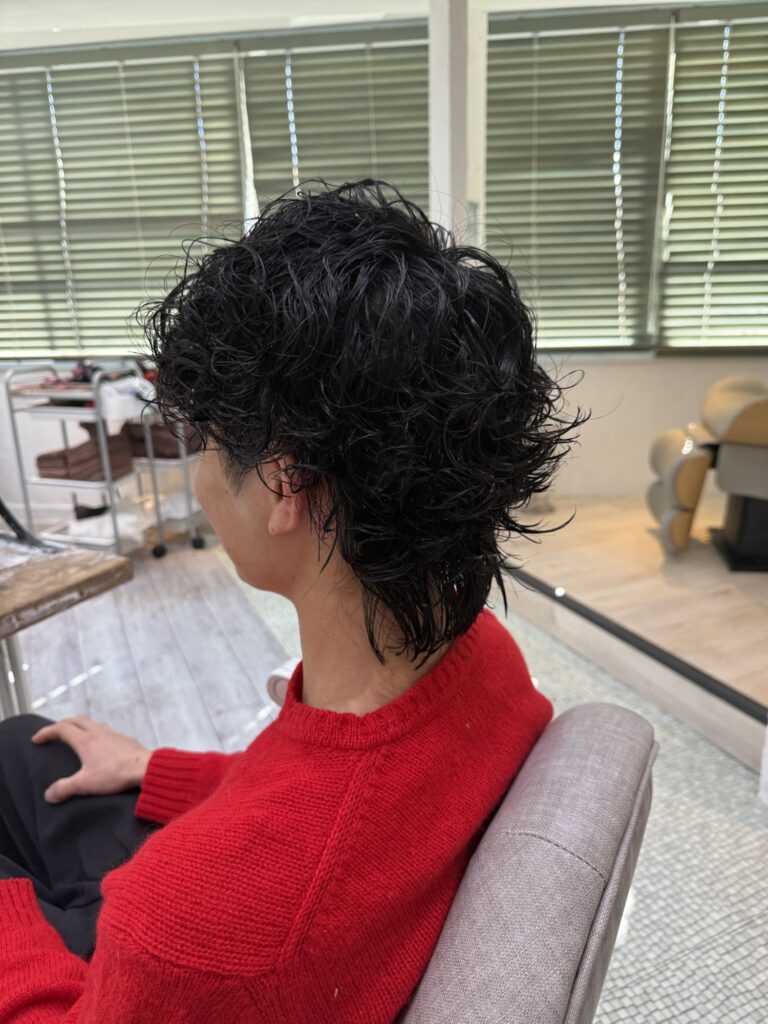 カールの強弱をつけることで、立体感とこなれ感を演出しています。ワックスやバームを軽く揉み込むだけで雰囲気が出るので、スタイリングが苦手な方にも◎
