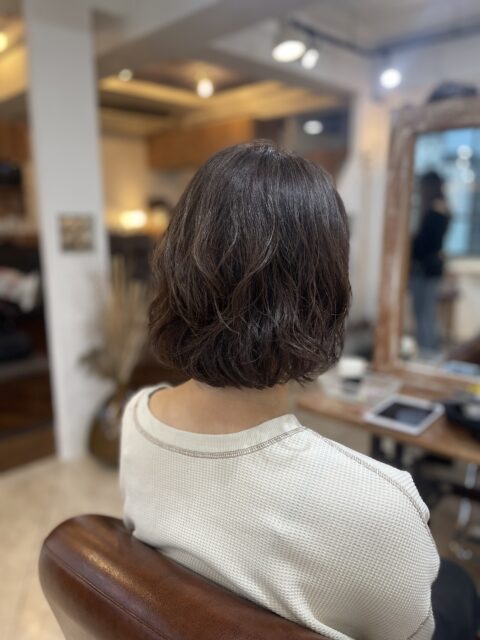ショートから伸ばしかけの状態から裾を切り揃えてボブっぽく、くしゅっとパーマもかけて動きが出るように♪ 朝は濡らしてハーフドライか[…]